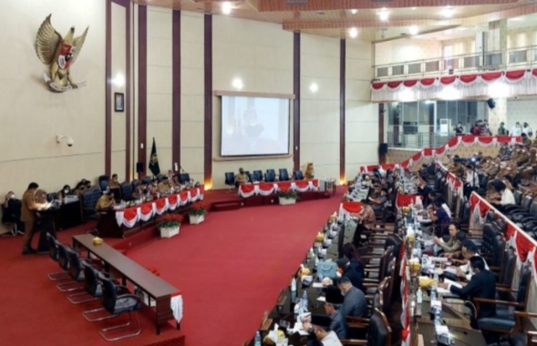 Dewan Perwakilan Rakyat Daerah (DPRD) Medan bersama Walikota Medan Bobby Afif Nasution menggelar rapat paripurna untuk penyampaian LPj Anggaran Pengeluaran Belanja Daerah (APBD) 2021, Senin 30/05/2022, digedung DPRD Kota Medan Sumatera Utara.