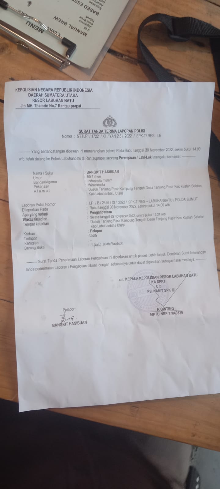 Pengancaman melalui telpon seluler itu terjadi pasca terbitnya pemberitaan terkait statement Bangkit tentang maraknya peredaran gelap narkoba di wilayah hukum Polres Labuhan Batu terkhusus Kabupaten Labuhan Batu Utara (Labura) yang sangat meresahkan masyarakat dan peredarannya sudah terang-terangan, karena ancaman tersebut, Bangkit pun melaporkannya di Polres Labuhan Batu, 30 Nopember 2022.