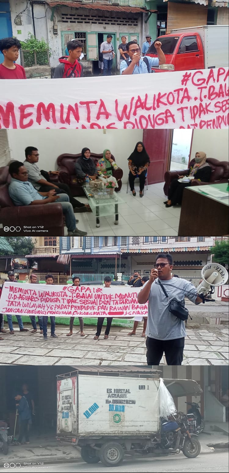 Selanjutnya aksi bergerak menuju kantor Disnaker, dimana saat berada disini, aksi yang dikoordinir Ahmad Rolel, Aldo Rivai Zuherisyah dan Faisal Rambe bersama puluhan aktivis lainnya mendesak dan meminta Pemerintah Kota Tanjungbalai agar segera menutup pabrik ice cristal UD. Aguaris karena telah memasarkan kepada masyarakat berupa produk yang tidak layak konsumsi dan dapat membahayakan kesehatan bagi yang mengkonsumsinya, terang Ahmad Rolel.