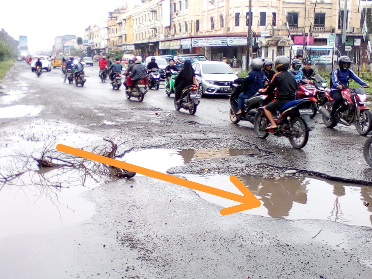 Deli Serdang_Waspadalah melintasi jalan penghubung Medan-Deli Serdang, tepatnya Jalan Wiliam iskandar pertepatan didepan Gedung Serbaguna milik Pemerintah Kabupaten Deli Serdang, karena jalan tersebut rusak parah, berlobang serta sudah banyak korban yang mengendarai sepeda motor jatuh dan terluka juga terjebak dijalan yang berlobang tertutup air hujan.