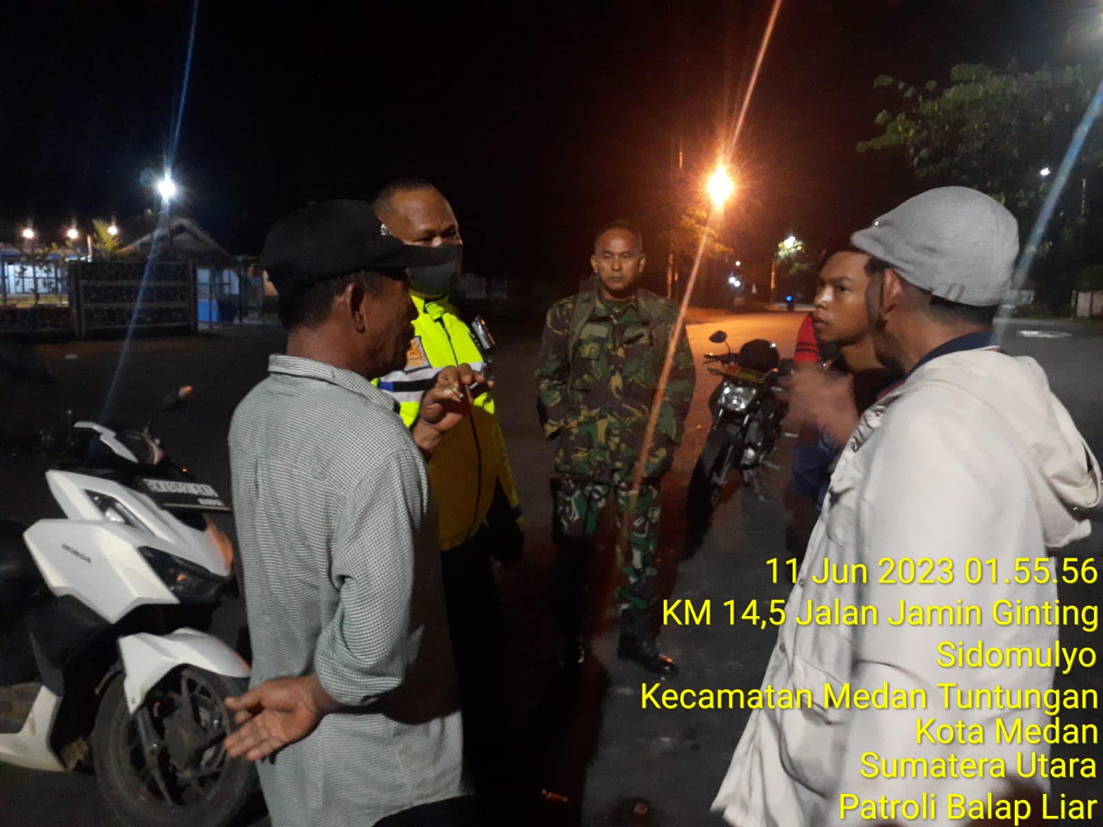 Personil Polsek Medan Tuntungan bersama Pihak Muspika Kecamatan Medan Tuntungan melakukan kegiatan razia untuk mencegah terjadinya balap liar_Minggu 11/06/2023 dini hari.