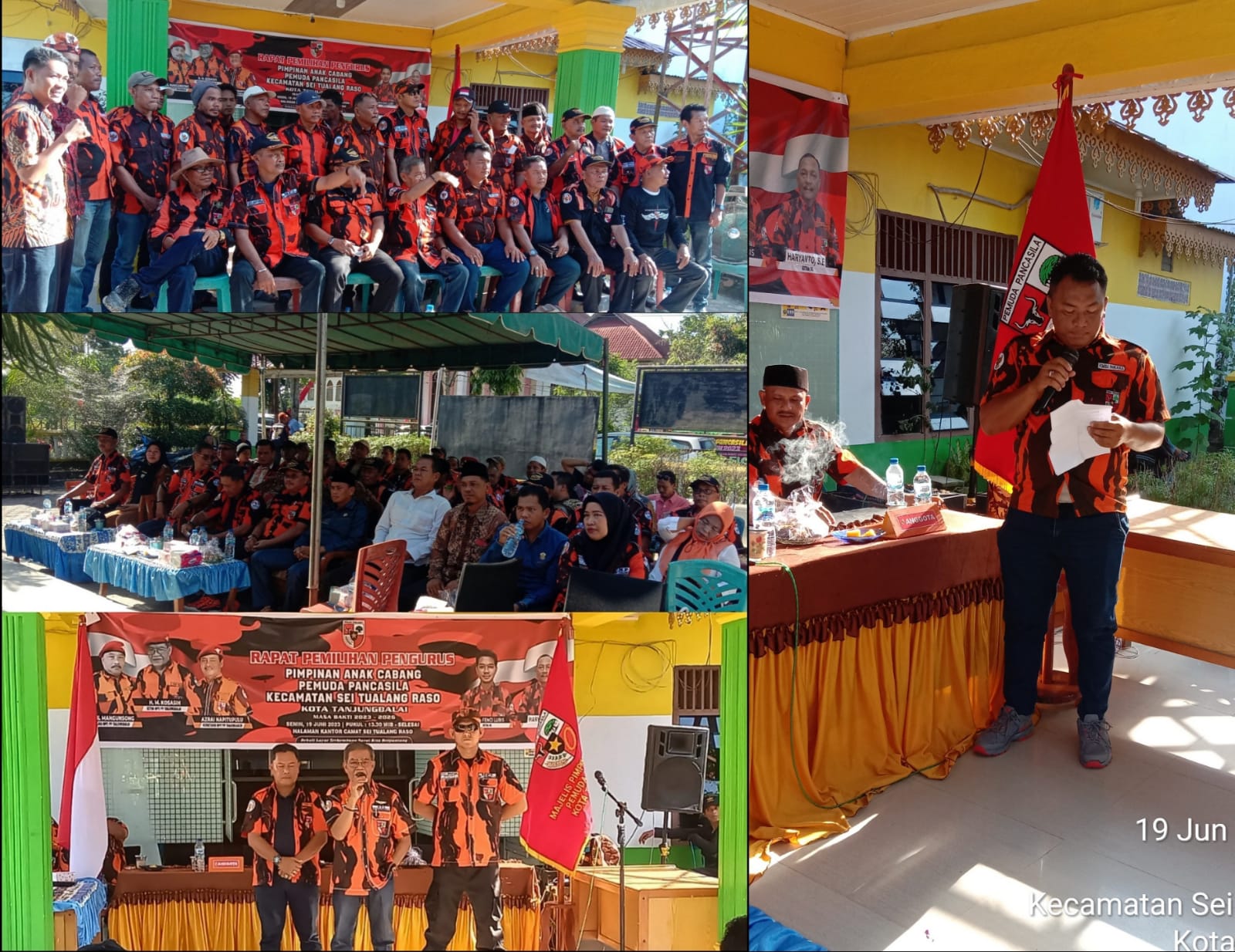 Tanjung Balai_Pimpinan Anak Cabang (PAC) Pemuda Pancasila Kecamatan Sei Tualang Raso menggelar Rapat Pemilihan Pengurus (RPP) periode 2023-2026 yang dilaksanakan di halaman Kantor Camat Sei Tualang Raso, Jalan Sei Raja No 1 Sei Tualang Raso Tanjung Balai_Senin (19/6/2023) siang.