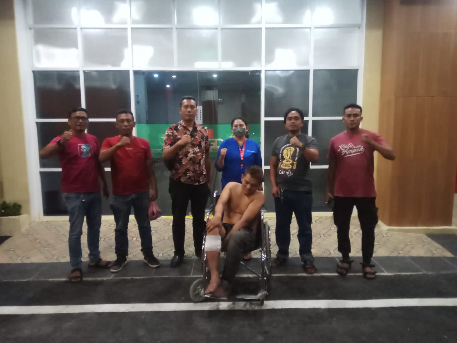 Selanjutnya personil memberikan peringatan dan memberikan tindakan tegas terukur ke kaki pelaku. Selanjutnya pelaku diboyong ke RS Bhayangkara untuk di obati dan lanjut diboyong ke Mako Polsek Percut Sei Tuan.