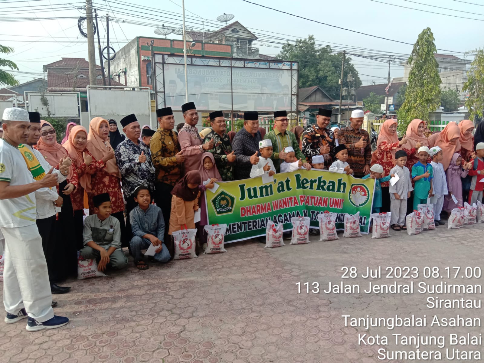 Demikian pula halnya Kantor Kementerian Agama (Kemenag) Kota Tanjung Balai bersama jajaran yang dibawah kepemimpinan Dr.H.Al Ahyu.MA, di hari Jumat Berkah ini menggelar acara pemberian santunan kepada anak yatim sekitar Kota Tanjung Balai_Jumat (28/7/2022) pagi atau tepatnya 10 Muharram 1445 H di halaman kantor Kemenag Jalan Jenderal Sudirman No 113 Kelurahan Sirantau Kecamatan Datuk Bandar Kota Tanjung Balai.