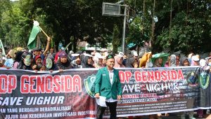 “Kekerasan demi kekerasan yang dialami muslim Uighur di Tiongkok sungguh menyesakkan dan memilukan. Terutama selama ini diduga kekerasan itu masih berlanjut namun diduga disembunyikan bahkan muslim Uighur dilarang berpuasa dibulan Ramadhan yang lalu”, ujar Irham saat berorasi.