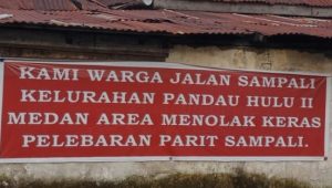 Menurut perwakilan salah satu warga Gunawan menyampaikan, pihaknya keberatan dengan proyek Pemko Medan melalui Dinas SDABMBK yang melakukan pelebaran parit/ drainase yang akhirnya penyempitan badan jalan. Dimana kata Gunawan, badan jalan sebelumnya 4,5 meter menjadi 2 meter hanya untuk pelebaran parit.
