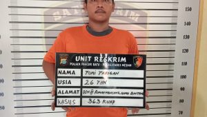 Tekab Polsek Pancur Baru Diamankan satu orang Pelaku atas nama Tomi Tarigan (26), Agama Kristen, Pekerjan Tidak ada, warga Jalan Delitua Dusun III Desa Namo Bintang Kecamatan Pancur Batu Kabupaten Deli Serdang, tersangka ini melakukan pencurian.