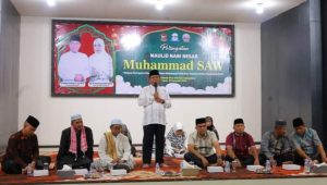 Tanjung Balai_Pemerintah Kota (Pemko) Tanjung Balai menggelar Peringatan Maulid Nabi Muhammad SAW, Kamis malam (21/9/2023) di Pendopo Rumah Dinas Walikota. Sebanyak 300-an orang hadir dalam acara diantaranya dari kalangan Asatidz, OPD, Camat, Lurah, Kepala Sekolah, Guru, ASN, Honorer, Kepala Lingkungan dan kalangan Santri Ponpes serta puluhan Tim Shalawat Majelis Dhiyaul Hady.