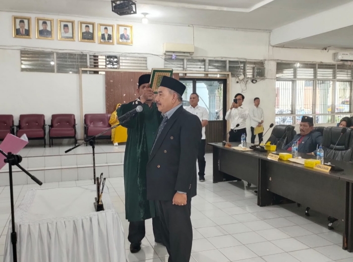 Tanjung Balai_Walikota Tanjung Balai H.Waris Tholib.SAg.MM, hadiri Rapat Paripurna DPRD dalam rangka Pelantikan dan Pengambilan Sumpah Janji Pengganti Antar Waktu (PAW) Anggota DPRD Kota Tanjung Balai Syafril Simargolang yang digelar di Aula gedung DPRD Jalan Jenderal Sudirman Kelurahan Karya Kecamatan TB Selatan_Rabu (27/9/2023).