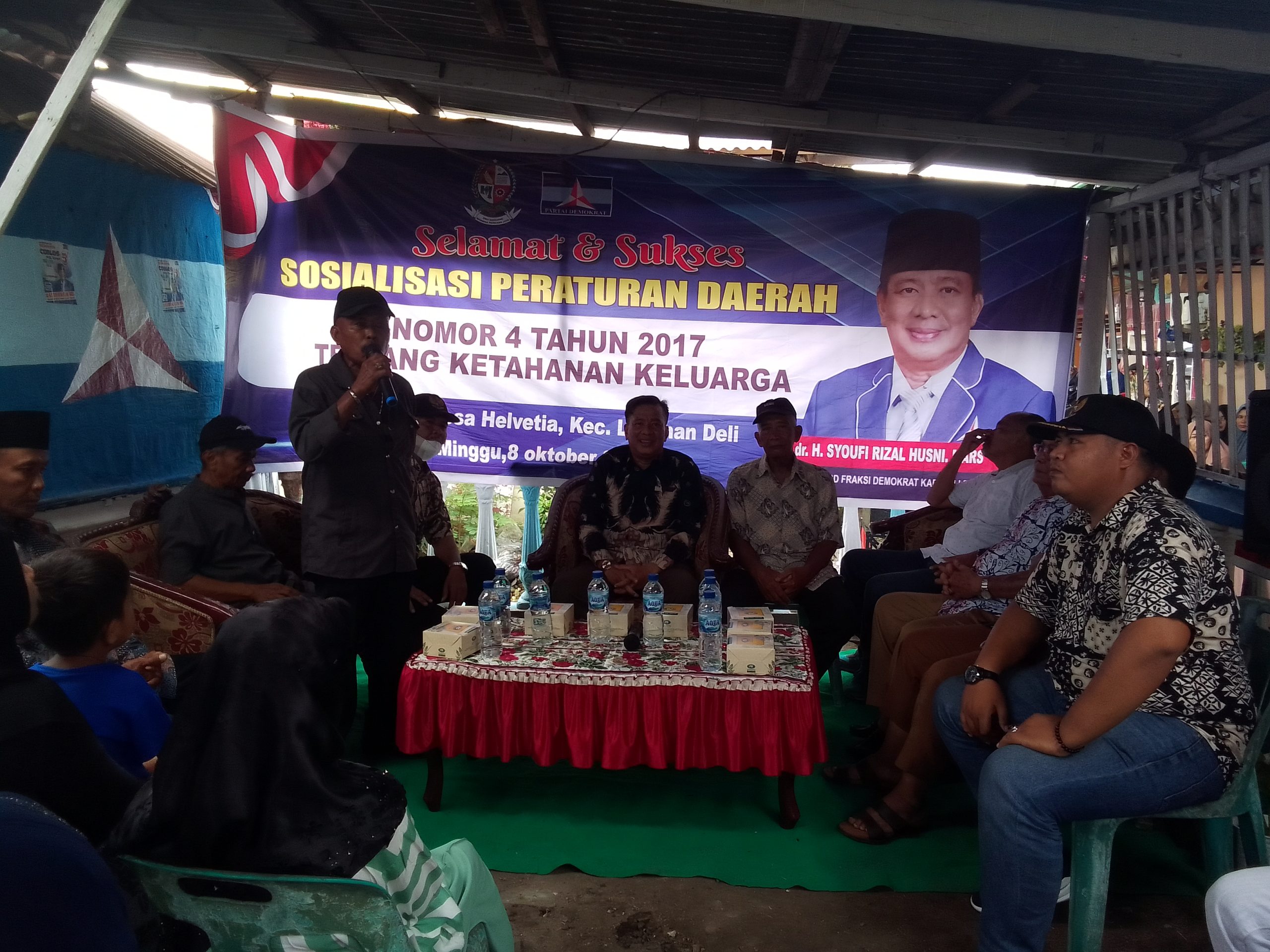 Hari ini Minggu 08 Oktober 2023 Anggota DPRD Kabupaten Deli Serdang dr.Syoufi Rizal Husni.Mars, yang akrab disapa dokter Syoufi dari partai Demokrat mengadakan Sosper No.14 Tahun 2017 Tentang Ketahanan Keluarga di Desa Helvetia Kecamatan Labuhan Deli Kabupaten Deli Serdang.