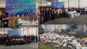 Asahan_Dalam menjalankan tugas dan fungsinya sebagai Community Protector, Bea Cukai Teluk Nibung menyelenggarakan pemusnahan Barang Milik Negara (BMN) dari berbagai jenis barang yang sebelumnya merupakan barang hasil penindakan di bidang kepabeanan dan cukai yang dilaksanakan di gudang TPP Bagan Asahan, Kamis (19/10/2023).
