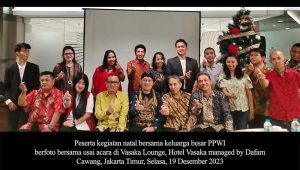 Jakarta_Untuk pertama kalinya sejak Persatuan Pewarta Warga Indonesia (PPWI) didirikan, organisasi para pewarta ini menyelenggarakan Natal bersama bertempat di Hotel Vasaka, Cawang Jakarta Timur, Selasa 19 Desember 2023. Tidak kurang dari 20-an anggota PPWI se-Jabodetabek hadir dalam acara yang dimulai pukul 16.00 wib itu.