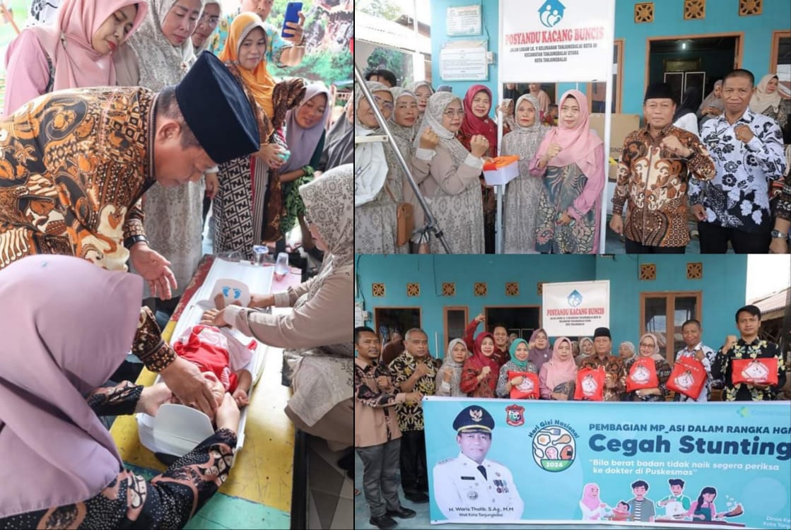 Wali Kota Tanjung Balai H.Waris Tholib.SAg.MM dan Pembina Posyandu Kota Tanjung Balai Hj.Fatiah Haitami, melakukan penyerahan bantuan peralatan Posyandu seperti alat Antropometri KIT (Timbang Bayi), Plank Nama, Meja, Kursi, Alat Permainan Anak dan membagikan makanan tambahan.