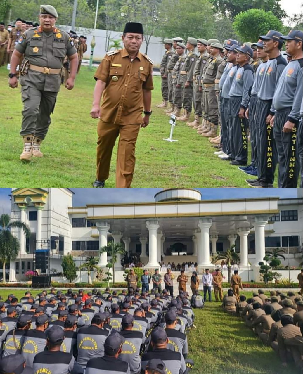 Tanjung Balai_Pemerintah Kota Tanjung Balai menggelar Apel Kesiapsiagaan Pasukan Perlindungan Masyarakat (Linmas) Pengamanan Pemilu Tahun 2024, di Halaman Kantor Walikota, Senin (12/2/2024) pagi.