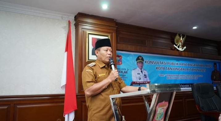 Tanjung Balai_Wali Kota Tanjung Balai H.Waris Tholib, membuka secara resmi acara Forum Konsultasi Publik Rancangan Awal Rencana Kerja Pemerintah Daerah (RKPD) Kota Tanjung Balai tahun 2025 di Aula I Sutrisno Hadi Lt 3 Kantor Walikota_Senin (19/2/2024).