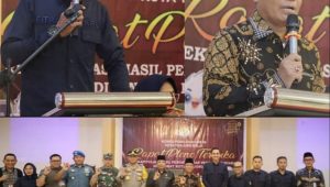Tanjung Balai_Wali Kota Tanjung Balai H.Waris Tholib memberikan sambutan saat menghadiri Rapat Pleno Terbuka Rekapitulasi Hasil Penghitungan Perolehan Suara pada Pemilihan Umum Tahun 2024 Tingkat Kota Tanjung Balai di Hotel Al-Musyaffa, JaIan Mangga Tanjung Balai_Kamis (29/2/2024).