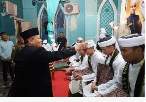 Tanjung Balai_Walikota Tanjung Balai H.Waris Tholib.SAg.MM, hadiri acara wisuda Santri Tahfiz Qur’an Masjid Saksi sekaligus Peringatan Isra’ Mi’raj Nabi Muhammad SAW 1445 H, pada Sabtu (02/03/2024) malam. Dalam kesempatan itu, Walikota Waris mewisuda sejumlah Santri.