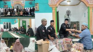 Sebagai bentuk kepedulian dan berbagi rezeki, kedatangan Lembaga ini juga ada memberikan bingkisan kepada pengurus BKM Musholla Baitullah berupa kain sarung dan bahan komoditi lainnya yang diserahkan langsung oleh Pembina Victim-61 Edi Hasibuan.