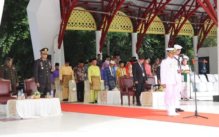 Tanjung Balai_Pemerintah Kota Tanjung Balai bersama Forkopimda melaksanakan Upacara Peringatan Hari Lahir Pancasila yang jatuh pada tanggal 1 Juni 2024 dengan mengangkat tema “Pancasila Jiwa Pemersatu Bangsa Menuju Indonesia Emas 2045”, bertempat di Lapangan Sultan Abdul Djalil Rahmadsyah Kecamatan Tanjung Balai Selatan Kota Tanjung Balai_Sabtu (01/06/2024).