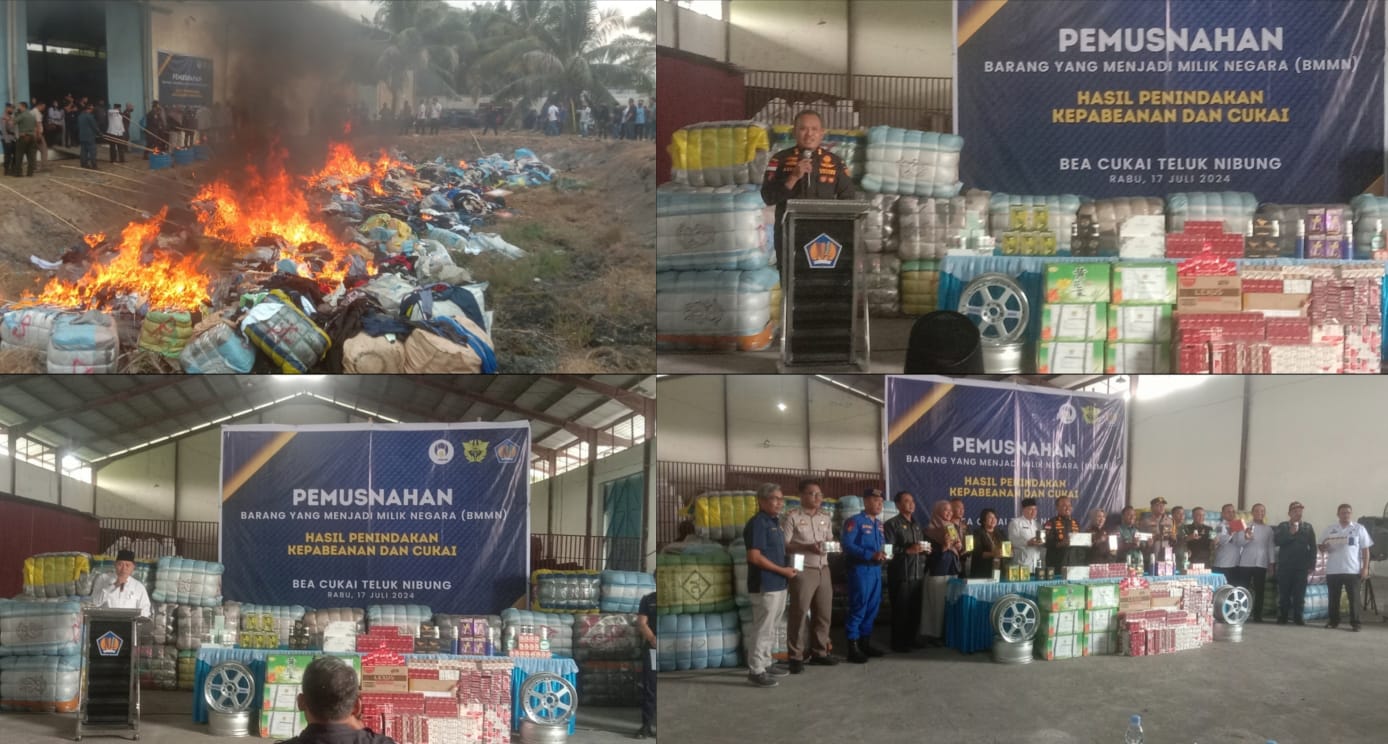 Lebih lanjut dikatakannya, berdasarkan surat Direktur Pengelolaan Kekayaan Negara dan Sistem Informasi Direktorat Jenderal Kekayaan Negara nomor 5-88/MK.6/KN.4/2024 tanggal 7 Juni 2024 tentang Persetujuan Pemusnahan Barang yang Menjadi Milik Negara pada KPPBC Tipe Madya Pabean C Teluk Nibung terdiri dari beberapa komoditi yaitu Barang kena cukai hasil tembakau berupa rokok sebanyak 229.960 batang, Ballpress pakaian bekas sebanyak 192 bal dari 11 kali penindakan, Laptop bekas sebanyak 2 pcs, Tas bekas sebanyak 6 pcs, Sparepart sebanyak 2 kali penindakan, Produk olahan makanan, olahan minuman, bumbu, shampoo, kosmetik sebanyak 199 kali dan Obat-obatan sebanyak 25 kotak, terang Anshari.