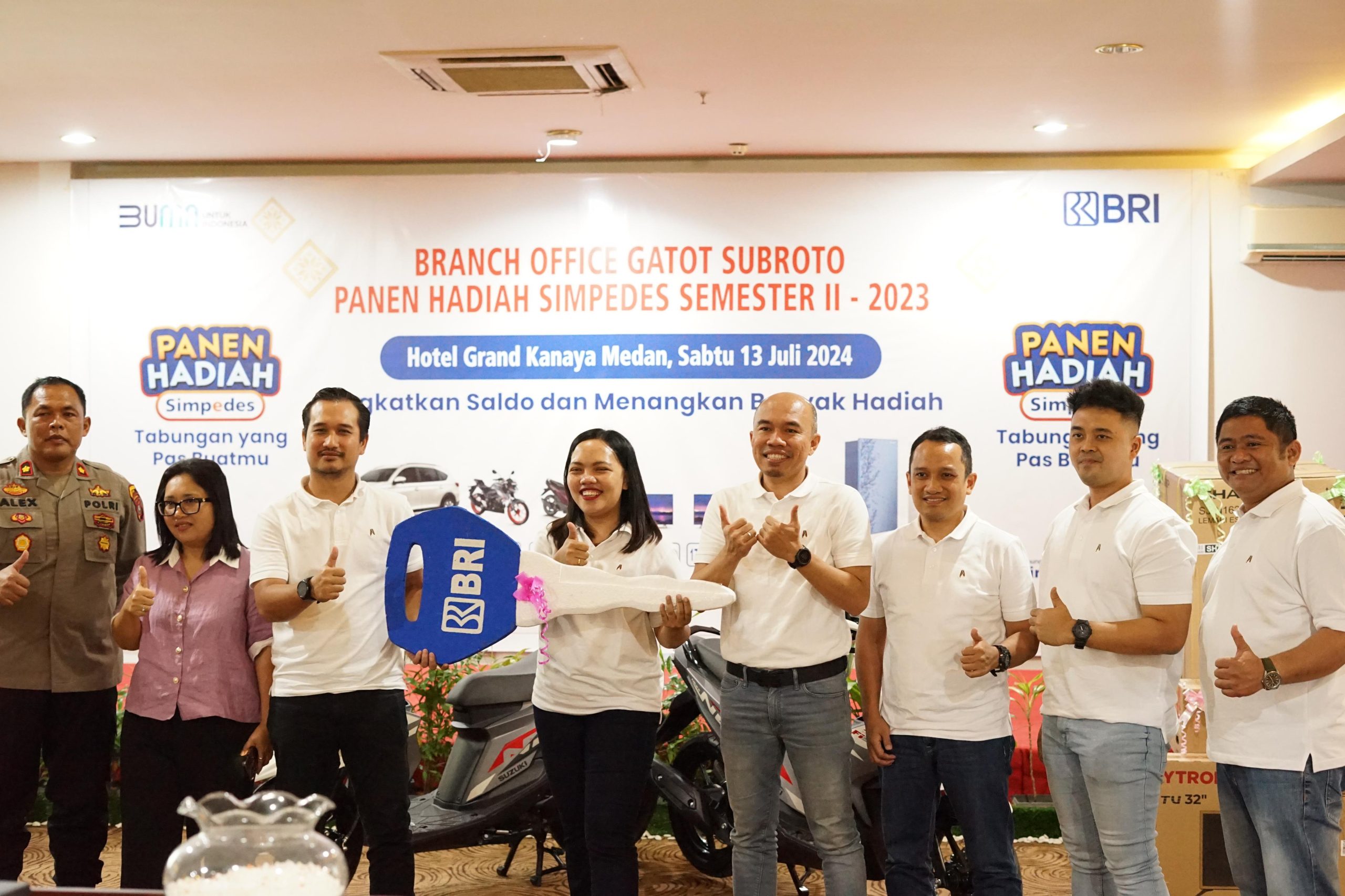 Bank Rakyat Indonesia Branch Office (BRI BO) Medan Gatot Subroto kembali menggelar Panen Hadiah Simpedes (PHS) Periode 2, yakni 01 September 2023 – 28 Februari 2024 , di Hotel Grand Kanaya Medan_Sabtu (13/07).