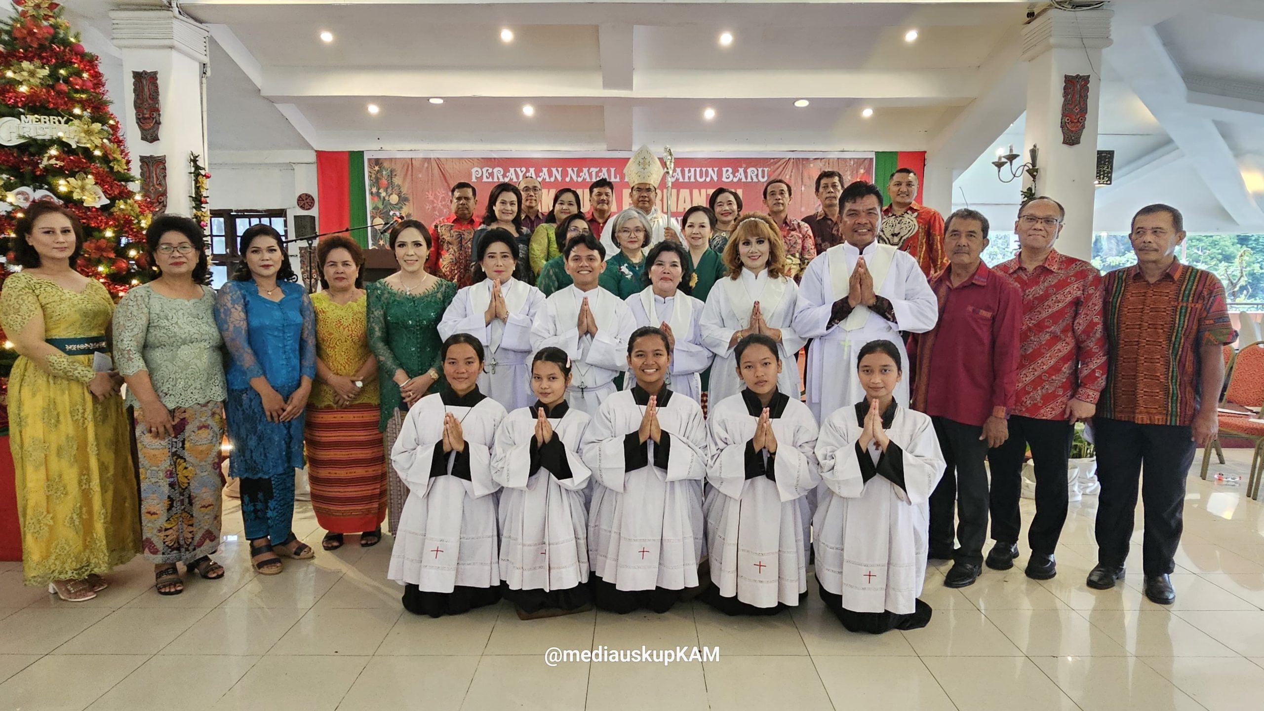 Mgr.Kornelius Sipayung OFMCap. Uskup Agung Medan Pimpin Syukuran Natal dan Tahun Baru Anak Pernantin Medan Sekitarnya yang dilaksanakan di Restoran Kenanga Simpang Selayang Medan_Jumat 10 Januari 2025.