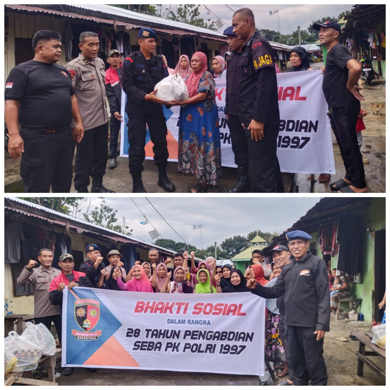 Satuan Brigade Mobil (Sat Brimob) dari Kepolisian Daerah Sumatera Utara (Polda Sumut ) adakan Bhakti Sosial Tepatnya di Link XIV Kelurahan Karang Berombak Kecamatan Medan Barat_Rabu, 15/01/2025. Dalam Rangka 28 tahun Pengabdian Seba PK Polri 1997.