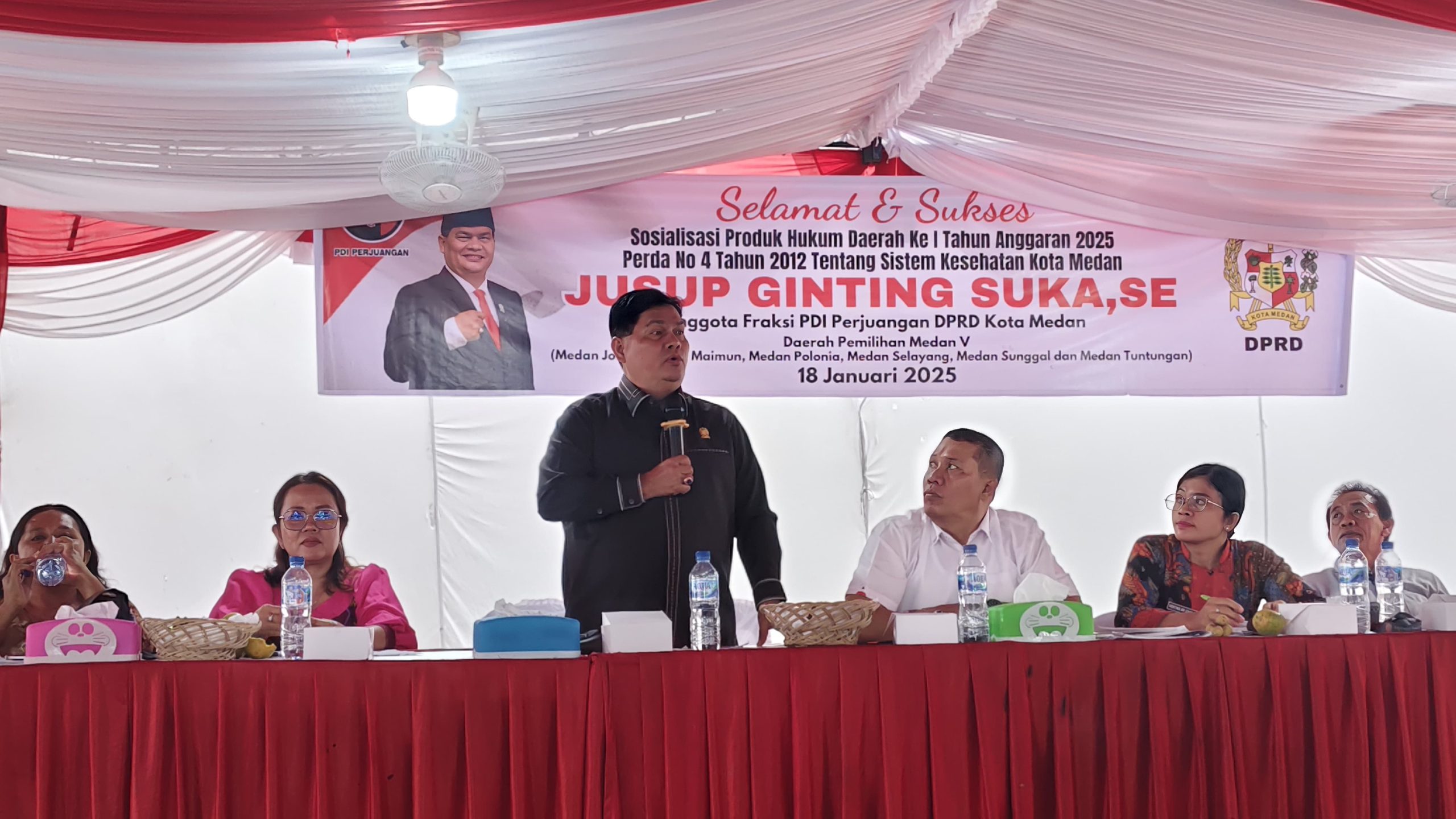 Dalam sambutannya Jusuf Ginting Suka, mengingatkan warga untuk menjaga kesehatan di tengah cuaca Kota Medan yang tidak menentu, “Masyarakat berhak mendapatkan pelayanan kesehatan yang maksimal dan itu yang terus kami perjuangkan melalui Perda ini”, ujarnya.