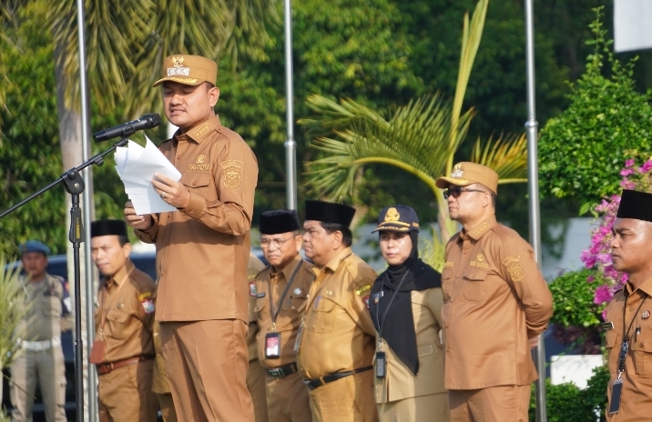 Tanjung Balai_Walikota Tanjung Balai Mahyaruddin Salim B, didampingi Wakil Walikota Muhammad Fadly Abdina, memimpin apel pagi di halaman Kantor Pemkot Tanjung Balai_Senin (3/3/2025).