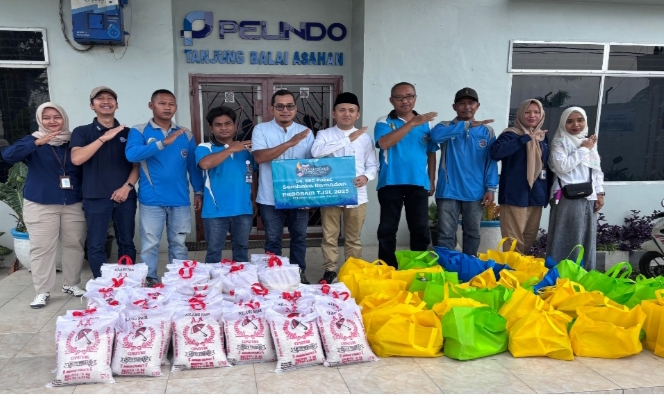 Tanjung Balai_PT.Pelindo Regional 1 Tanjung Balai Asahan (TBA) bersama jajaran struktural melalui program berbagi Ramadhan 1446 H atau 2025 M kembali menunjukkan komitmennya dalam mendukung kesejahteraan tenaga kerja bongkar muat dan masyarakat dengan menyalurkan paket sembako yang dilaksanakan di Jalan Pelabuhan Teluk Nibung Kota Tanjung Balai_Kamis (20/03/2025).