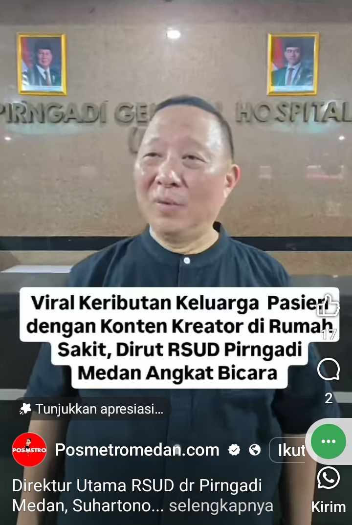 Berikut link dan video klarifikasi Direktur RSUD Pirngadi Medan https://www.facebook.com/share/v/16RSacziW2/