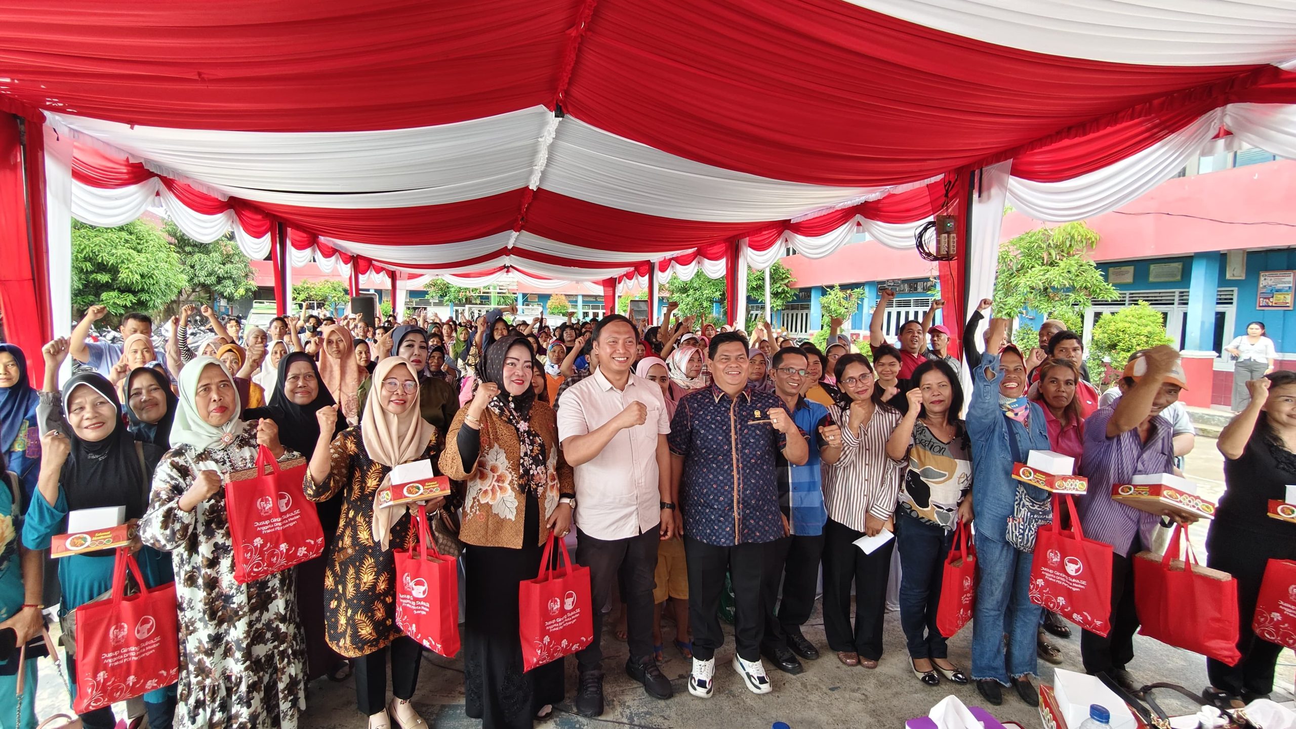 Selanjutnya Jusuf Ginting Suka, didampingi para perwakilan OPD yang hadir membagikan suvenir, nasi dan kue kotak kepada seluruh peserta yang hadir pada kegiatan tersebut.