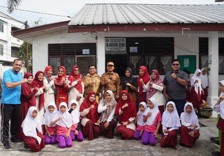 Usai melakukan monitoring dan kunjungan di SMPN 2, selanjutnya Walikota beserta rombongan melanjutkan kunjungan ke SDN 132402. Tiba dilokasi, beliau diterima Kepala Sekolah beserta para Guru dan siswa.