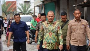 Tanjung Balai_Walikota Tanjung Balai Mahyaruddin Salim, didampingi Wakil Walikota Muhammad Fadly Abdina, meninjau sekaligus menyalurkan bantuan untuk masyarakat korban kebakaran yang berada di Lingkungan II Kelurahan Kapias Pulau Buaya Kecamatan Teluk Nibung_Kamis (24/4/2025).