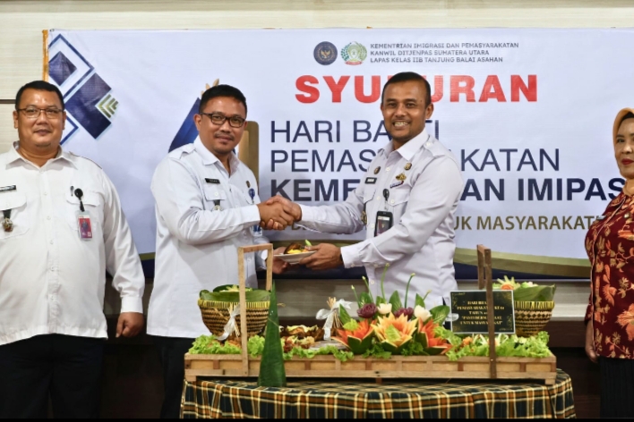 Tanjung Balai_Kantor Imigrasi Kelas II TPI Tanjung Balai Asahan (Kanim TBA) menghadiri acara tasyakuran puncak Hari Bakti Pemasyarakatan ke-61 yang digelar di Aula Lembaga Pemasyarakatan (Lapas) Kelas IIB Tanjung Balai Asahan_Senin (28/4/2025).