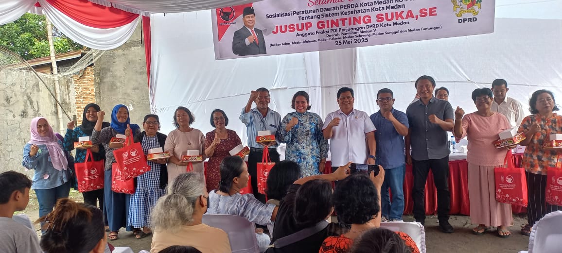 Anggota DPRD Kota Medan Jusup Ginting Suka.SE, kembali turun ke masyarakat lewat kegiatan Sosialisasi Peraturan Daerah (Sosper) Kota Medan Nomor 4 Tahun 2012 tentang Sistem Kesehatan Kota Medan. Kegiatan ini digelar di Jalan Bunga Sedap Malam 3, Kelurahan Sempakata Kecamatan Medan Selayang_Minggu (25/5/2025) sekira pukul 14.00 WIB.