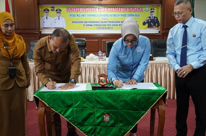 Tanjung Balai_Pemerintah Kota Tanjung Balai dan Kejaksaan Negeri (Kejari) Tanjung Balai melakukan penandatanganan kesepakatan bersama tentang Penanganan Masalah Hukum Bidang Perdata dan Tata Usaha Negara (TUN) pada Wilayah Hukum Kota Tanjung Balai, yang berlangsung di Aula Sutrisno Hadi Kantor Walikota Tanjung Bala_ Selasa (8/7/2025).