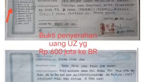 “Bukti Penerimaan uang oleh BR ada sama kami aslinya, didalam Kuitansi Penerima uang tertulis nama BR yang ditandatangani diatas materai 10.000 dan cap jempol. Pertama DP Rp.150 Juta dan penyerahan kedua Rp.450 juta”, terang Yudikar.