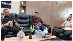 Kepala Dinas SDABMBK Kota Medan Gibson Panjaitan menerima kunjungan Ketua Komisi 3 Dewan K3 Sumatra Utara T.MYusuf, Kamis (31/7/2025).