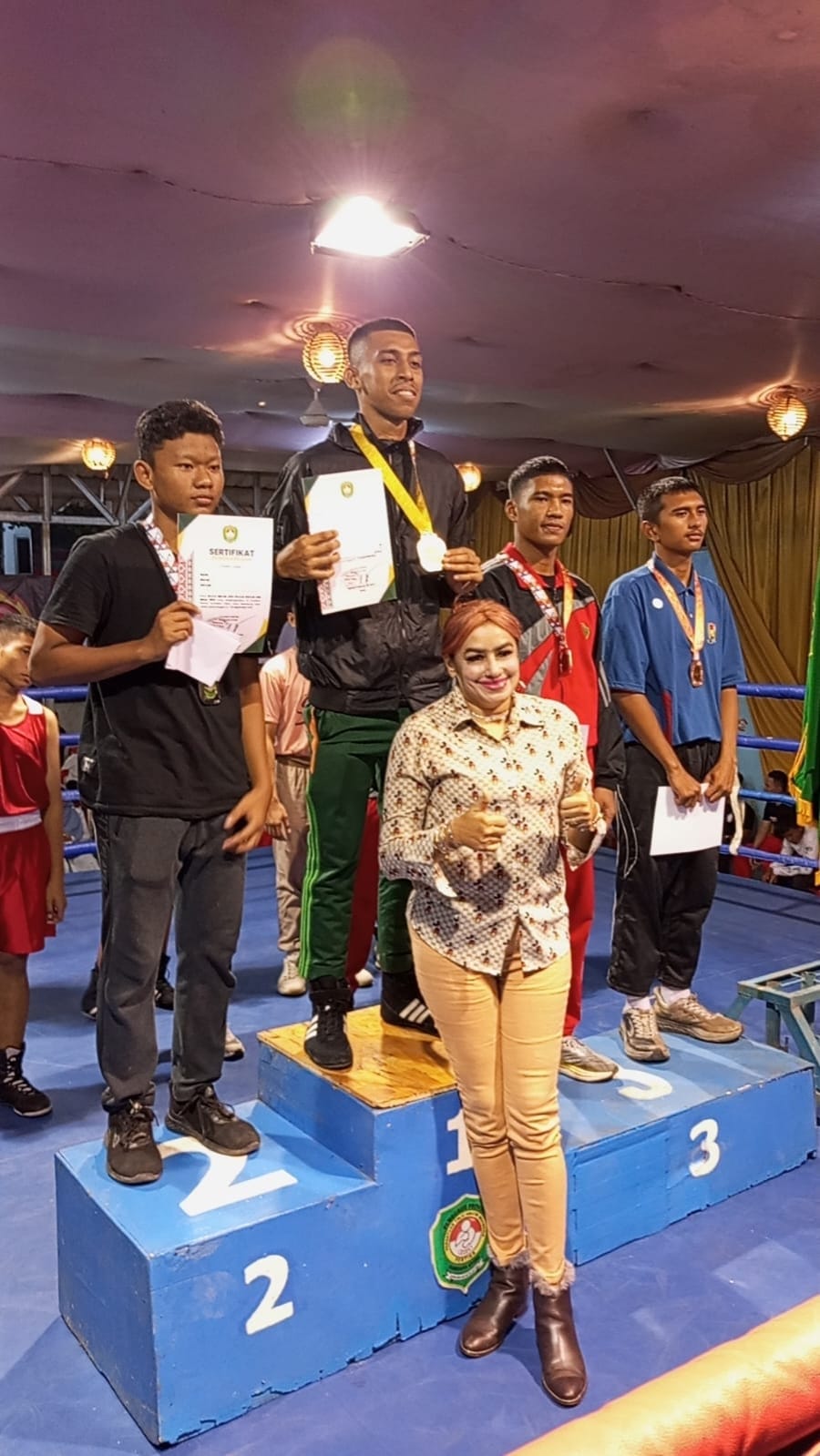 Dalam prosesi penyerahan medali, adv.Anita Raj Punjabi naik ke atas ring tinju dan menyerahkan medali kepada para atlet pelajar yang berhasil meraih juara I, II dan III.