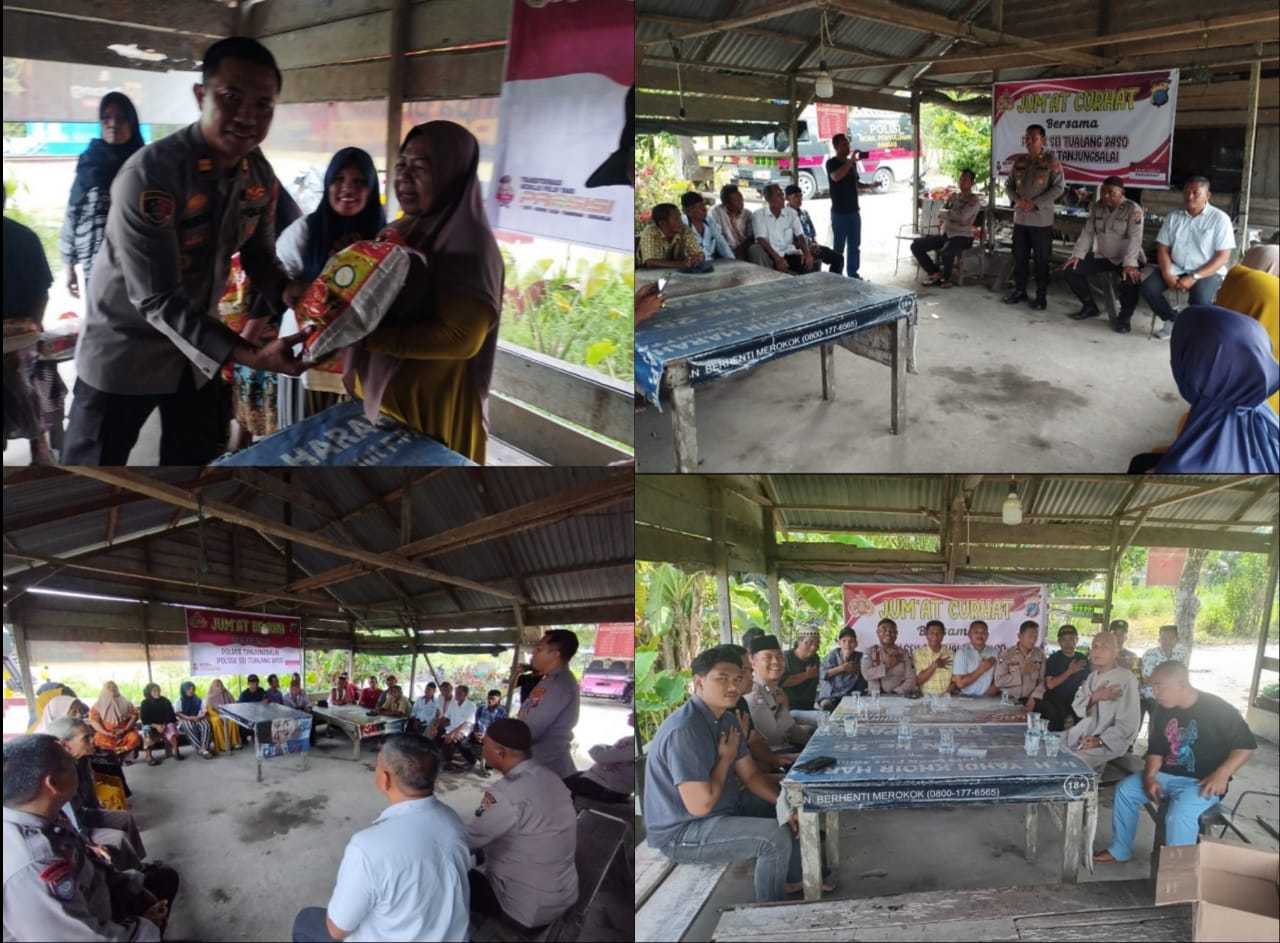 Tanjung Balai_Polres Tanjung Balai bersama Polsek Sei Tualang Raso menggelar acara Jum’at Curhat yang dilaksanakan di warung kopi Wak Angkot yang berlokasi di Jalan DI.Panjaitan Lk V Kelurahan Pasar Baru Kecamatan Sei Tualang Raso (STR) kota setempat, Jum’at (26/9/2025) sekaligus memberikan sebanyak 25 paket sembako kepada warga sekitar yang hadir.