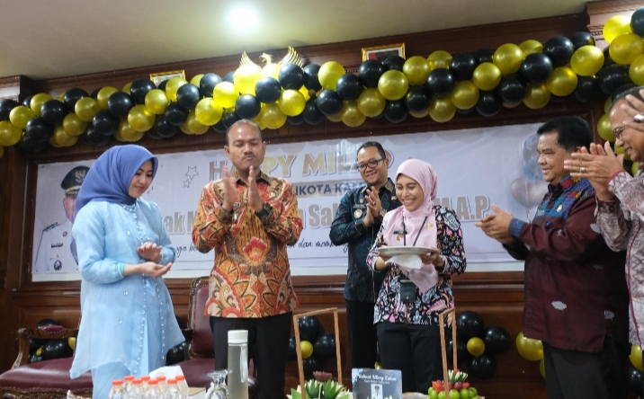 Tanjung Balai_Walikota Tanjung Balai Mahyaruddin Salim didampingi Istri yang juga Ketua TP-PKK Ny.Mashandayani, mendapatkan surprise di hari ulang tahunnya yang hari ini genap berusia 43 tahun. Pesta ulang tahunnya dirayakan sederhana dihadiri Wakil Walikota (Wawako) Muhammad Fadly Abdina, Sekretaris Daerah Nurmalini Marpaung, para Asisten, Staf Ahli, Pimpinan OPD, Camat, Lurah dan ASN di Aula Sutrisno Hadi, Kantor Walikota Tanjung Balai, Kamis (2/10/2025).