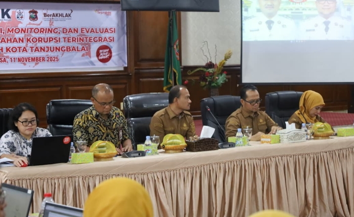 Tanjung Balai_Pemerintah Kota (Pemko) Tanjung Balai bersama Komisi Pemberantasan Korupsi (KPK) menggelar Rapat Koordinasi (Rakor) Pemantauan dan Evaluasi Indeks Pencegahan Korupsi Daerah Monitoring Controlling Surveillance for Prevention (IPKD–MCSP) Tahun 2025, bertempat di Aula Sutrisno Hadi, Kantor Walikota Tanjung Balai, Selasa (11/11/2025).