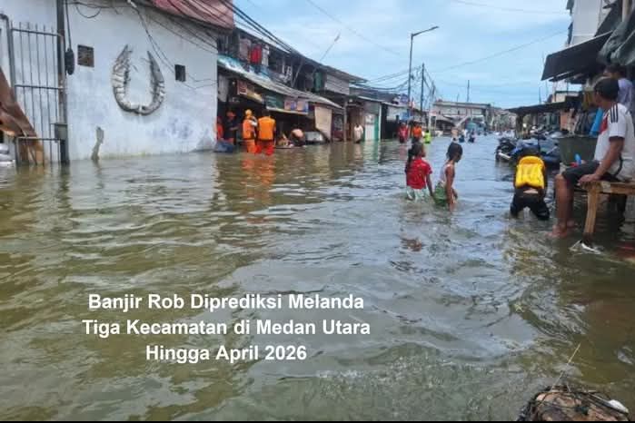 Banjir pasang besar (banjir rob) diprediksi menerjang wilayah pesisir Medan Utara, yakni Kecamatan Medan Belawan, Medan Labuhan dan Medan Marelan, mulai akhir Maret hingga awal April 2026.