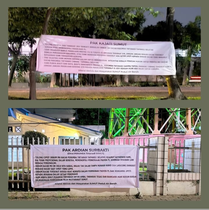Aparat penegak hukum seperti Kejaksaan Tinggi Sumut harus respon terhadap aspirasi, kebetulan spanduk itu ada didepan kantor mereka, turun ke PDAM Tirtanadi cabang Tapanuli Selatan, periksa oknum Kacab tersebut, gak mungkin ada asap gak ada api, jika terbukti bersalah tangkap karena sudah merugikan perusahaan milik masyarakat Sumatera Utara ujar salah satu masyarakat Medan. Kamis (09/04/2026),