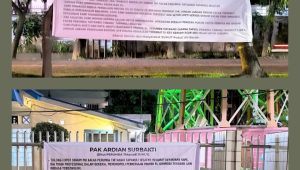 Spanduk yang terpasang tersebut menjadi tanda tanya Publik.