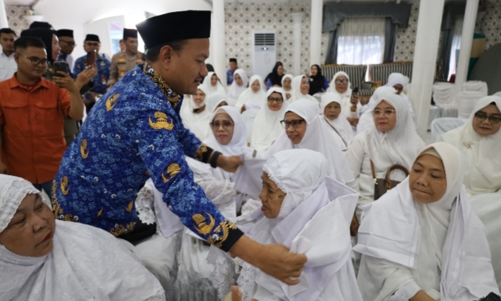 Tanjung Balai_Sebanyak 134 Jemaah calon Haji asal Kota Tanjung Balai Tahun 1447 H/2026 M ditepung tawari di Pendopo Rumah Dinas Walikota Tanjung Balai, Senin (27/4/2026). Seluruh Jemaah dipastikan siap diberangkatkan ke Tanah Suci.