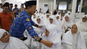 Tanjung Balai_Sebanyak 134 Jemaah calon Haji asal Kota Tanjung Balai Tahun 1447 H/2026 M ditepung tawari di Pendopo Rumah Dinas Walikota Tanjung Balai, Senin (27/4/2026). Seluruh Jemaah dipastikan siap diberangkatkan ke Tanah Suci.